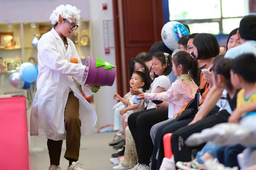 “神奇科學(xué)實(shí)驗(yàn)”,“科學(xué)博士”向孩子們展示了科學(xué)實(shí)驗(yàn),讓孩子們?cè)谌の侗硌葜袑W(xué)習(xí)了航天科學(xué)知識(shí)。